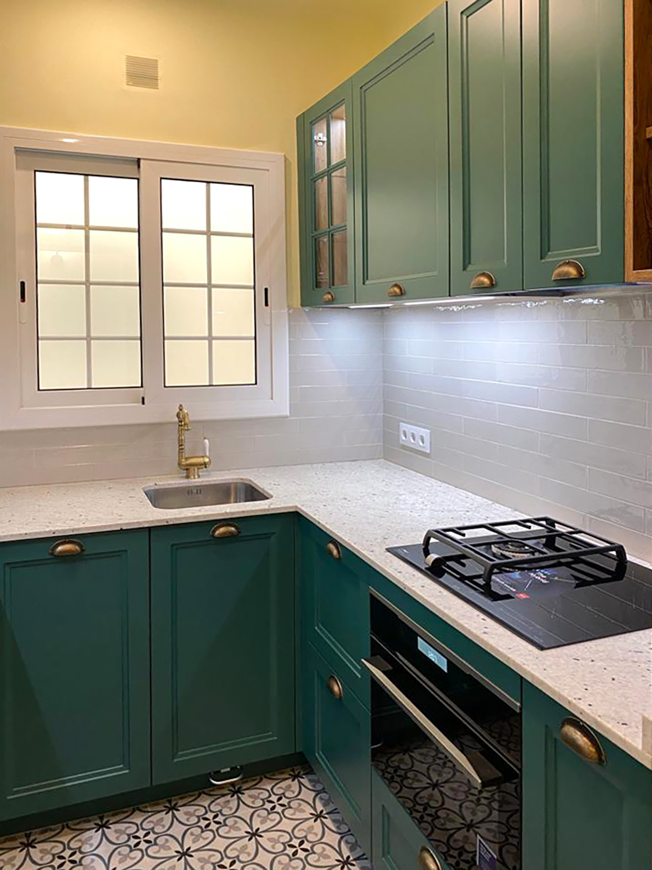 En la vivienda se combinan diferentes colores proponiendo una divertida paleta cromática, combinando un estilo eclectico, dándole un toque chic y retro al mismo tiempo.