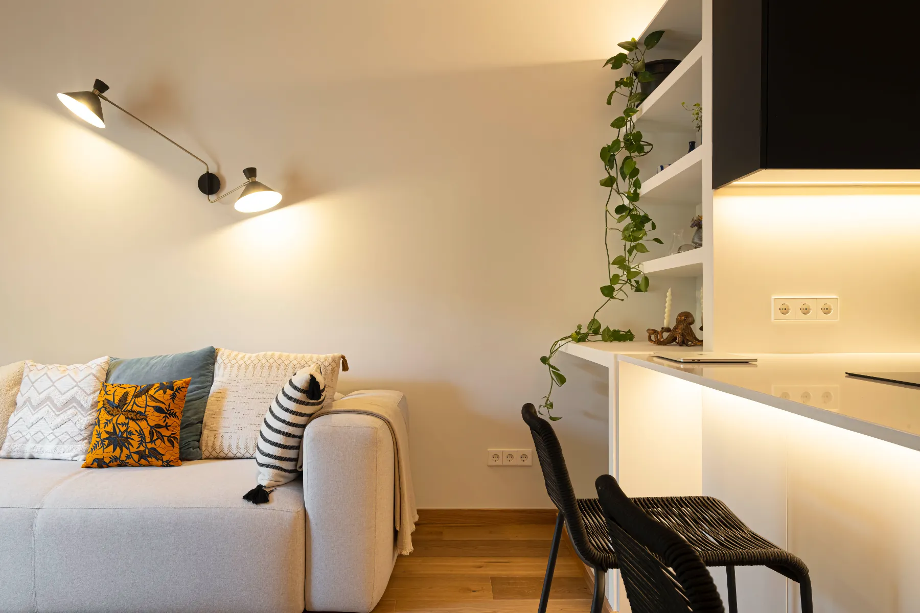 Proyecto de reforma de una vivienda unifamiliar en el barrio de Gracia (Barcelona), donde se redistribuyeron los espacios para crear una zona social abierta y luminosa, con ventilación cruzada. Se recuperaron elementos originales como vigas de madera y paredes de ladrillo visto, resaltando un estilo tradicional y acogedor. Los acabados combinan parquet de roble natural con baldosas hidráulicas, fusionando tradición y diseño contemporáneo.