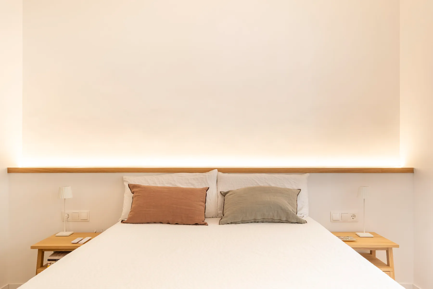Proyecto enfocado en devolver a la vivienda su identidad original tras varias reformas. Se buscó reflejar la personalidad sobria y tranquila de la propietaria en cada espacio, utilizando madera natural en suelos y mobiliario, y optando por piezas integradas para lograr ambientes serenos. La iluminación se cuidó especialmente para aportar calidez y relajación, destacando una cocina con tonos cálidos y materiales de piedra natural.
